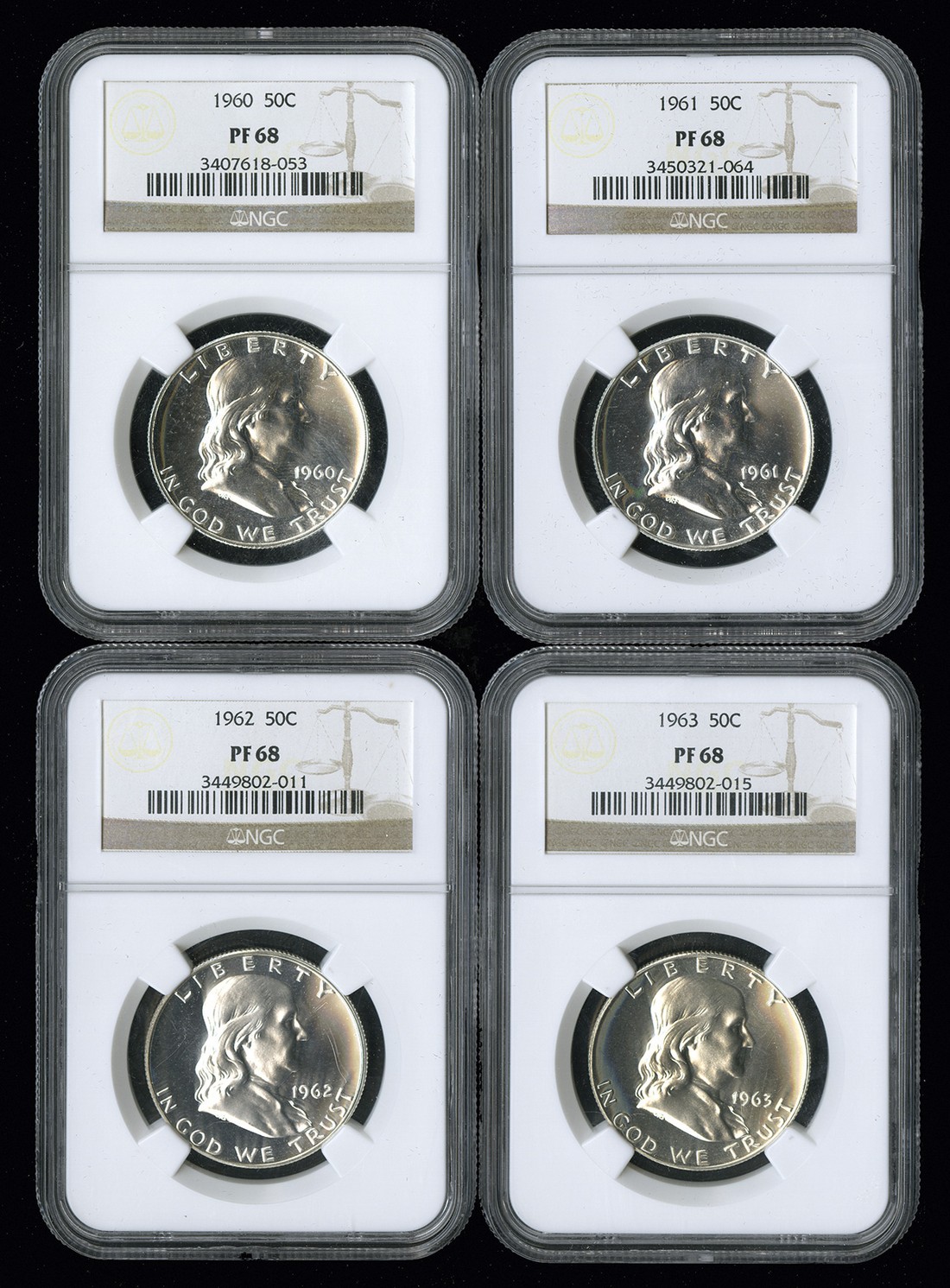 1960-1963 Franklin Half Dollar Quartette. All NGC PF68.