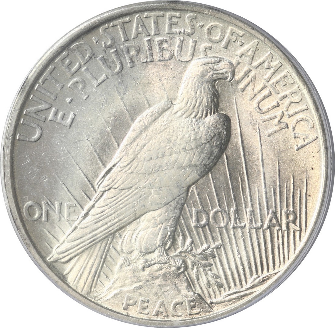 1921 Peace Dollar PCGS MS64. Frosty white throughout.