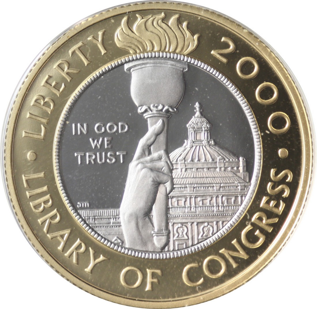 2000. $10. Library of Congress. Gold and platinum Proof. In the original capsule and black velvet case. No paper or other packaging.