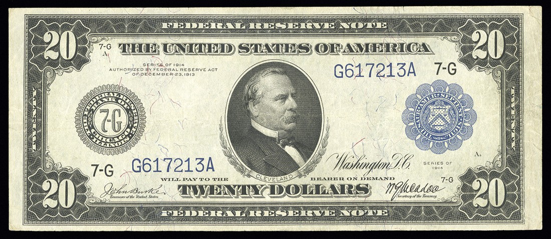 Fr.988. $20. Federal Reserve Bank. 1914. Grover Cleveland. Chicago. No.G617213A. Plate A. VF.