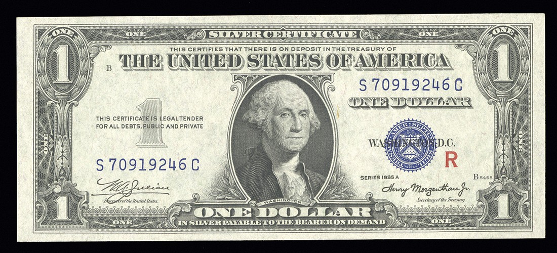 Fr.1609. $1. Silver Certificate. 1935A. R experimental. No.S70919246C. Plate B. Choice Uncirculated.