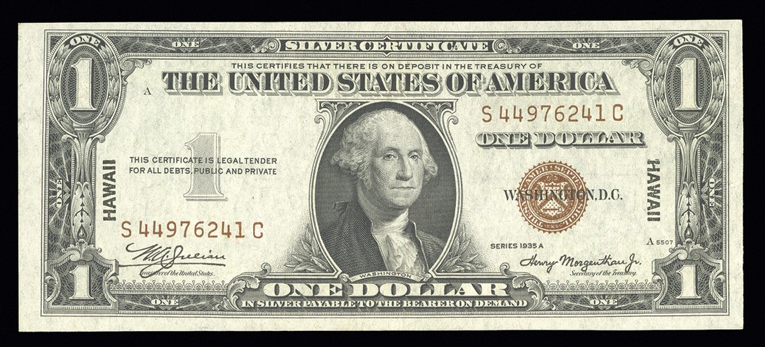 Fr.2300. $1. Silver Certificate. 1935A. HAWAII. Brown seal. No.S44976241C. Plate A. Choice Uncirculated.