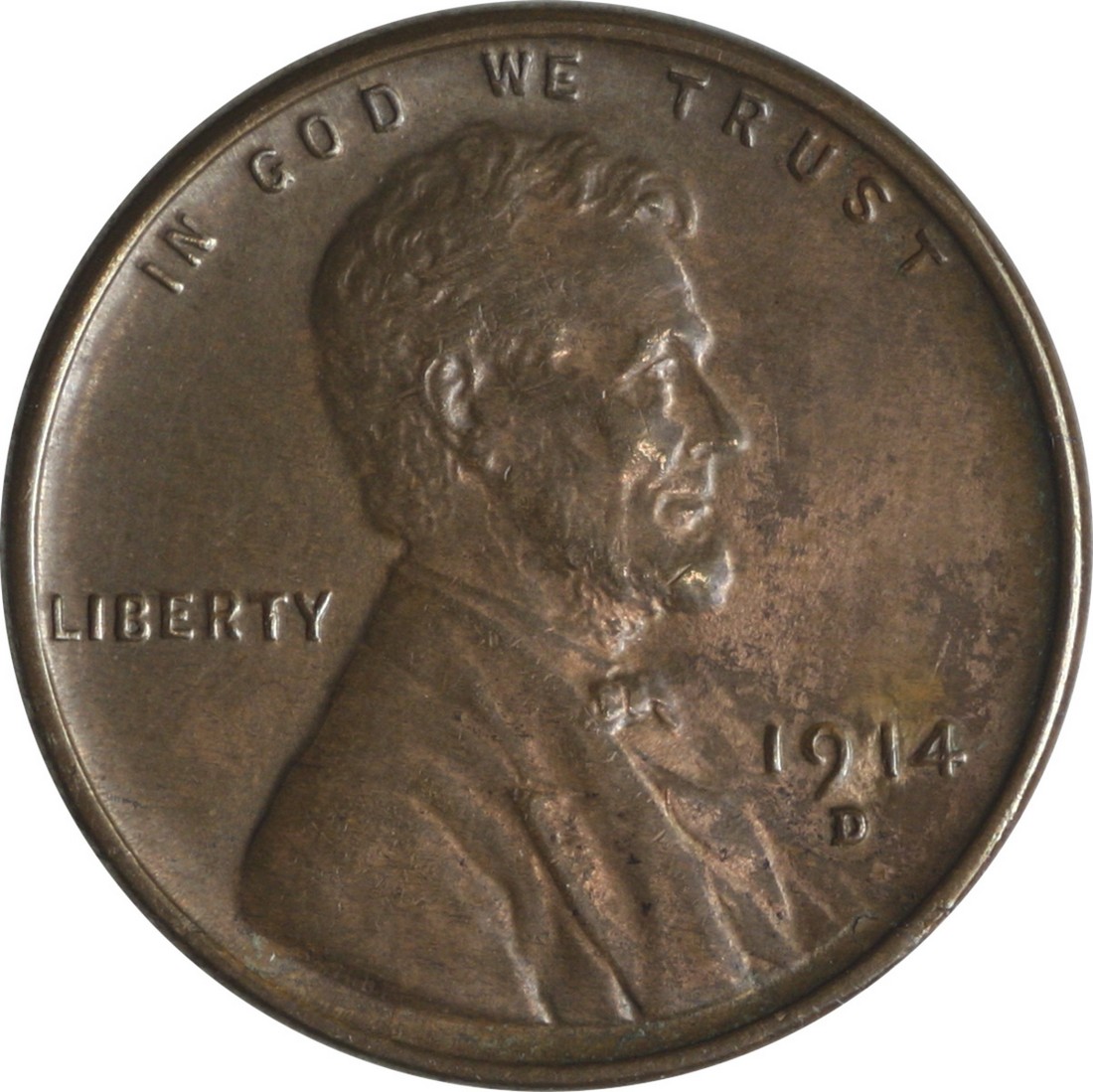 1914-D Lincoln Cent. The obverse is that of a strong About Uncirculated or better, as the high points exhibit only light friction. The reverse is entirely Mint State. A shade of medium brown patina bathes most of this satiny, key date example.