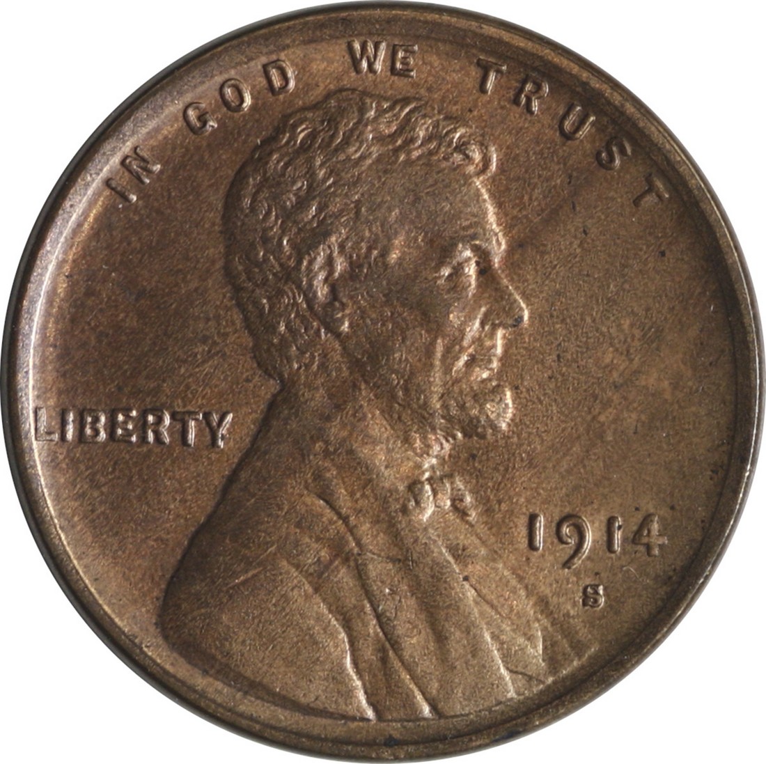1914-S Lincoln Cent. Choice Brilliant Uncirculated and approaching the Gem Category. Well struck design elements accompany rich, velvet-like mint bloom. The obverse is mostly a pale brown with evidence of underlying faded red. The reverse offers balanced, delicately faded mint color.