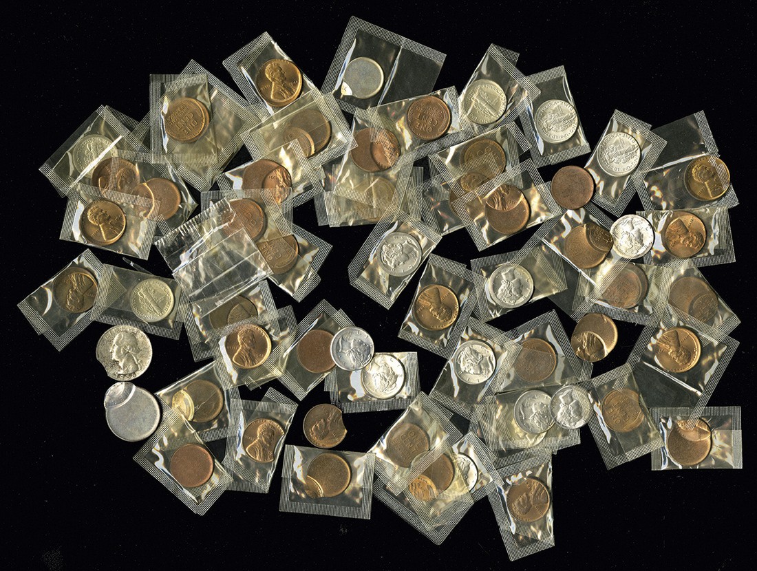 Wonderful Error Assortment. A wide assortment of errors on Lincoln Cents(41), Mercury Dimes(16), and Washington Quarters(2). Included are coins that are struck out of the collar, broadstruck, a few blank planchets, off center strikes of all proportions, and clips. Most of the Lincoln Cents are blazing red Gems; the Mercury Dimes are brilliant white Gems, and the 1956 Washington Quarter is Uncirculated with some nice toning. Our estimate may prove to be very conservative. Must be seen. Sold as is. No returns.