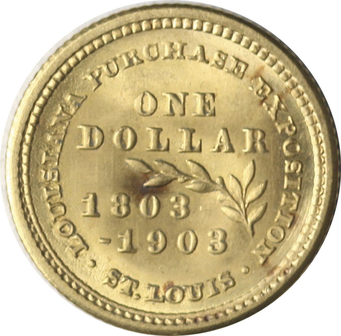 1903 Louisiana Purchase / McKinley $1. Very Choice Brilliant Uncirculated. NGC MS64. With clear and brilliant satiny surfaces.