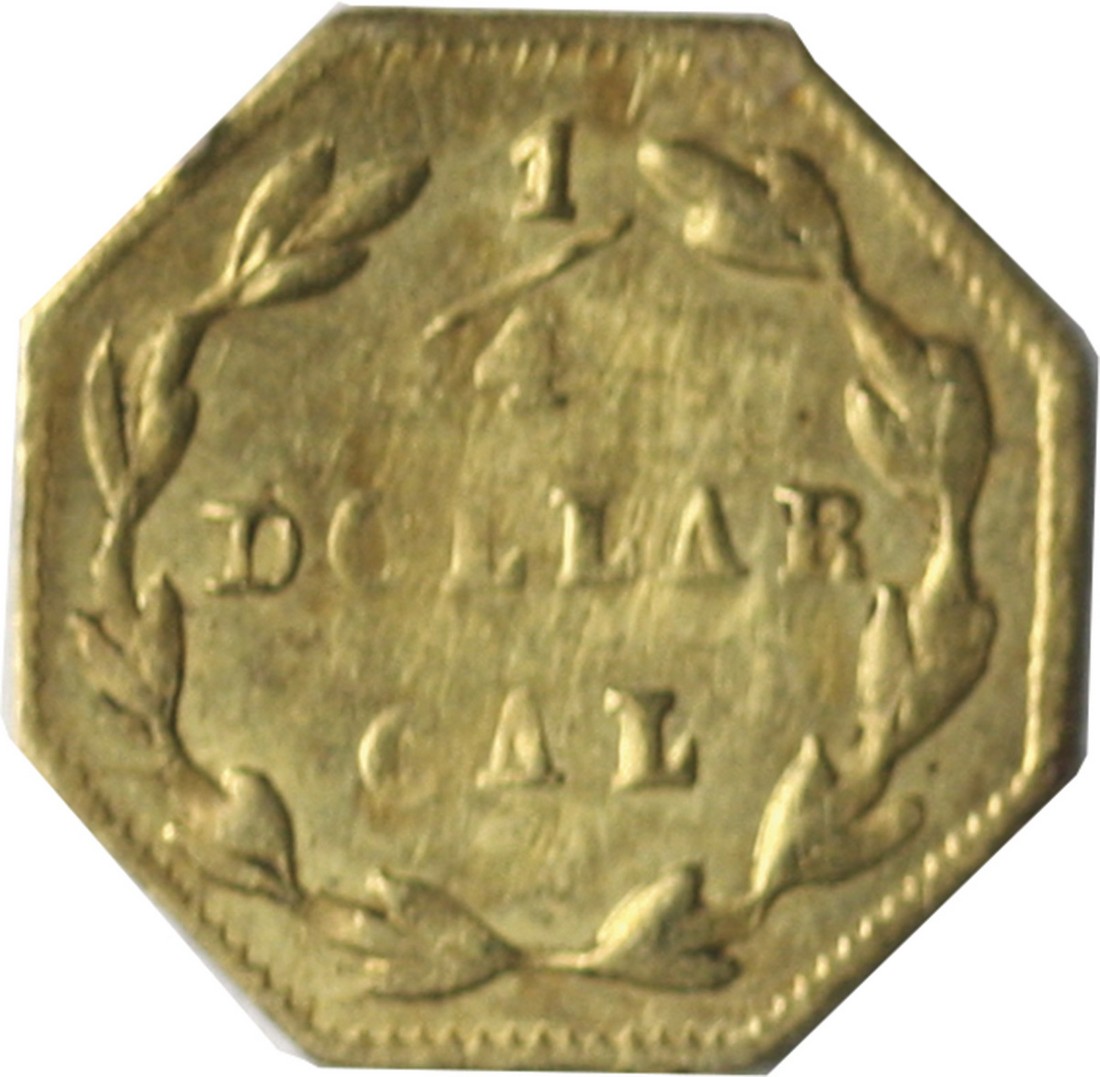 California Fractional Gold. 1871 Liberty Head Octagonal Quarter Dollar. BG-765 (R-3). Brilliant Uncirculated and displaying plenty of icy mint frost. Some light lines and marks are noted on both the obverse and reverse.