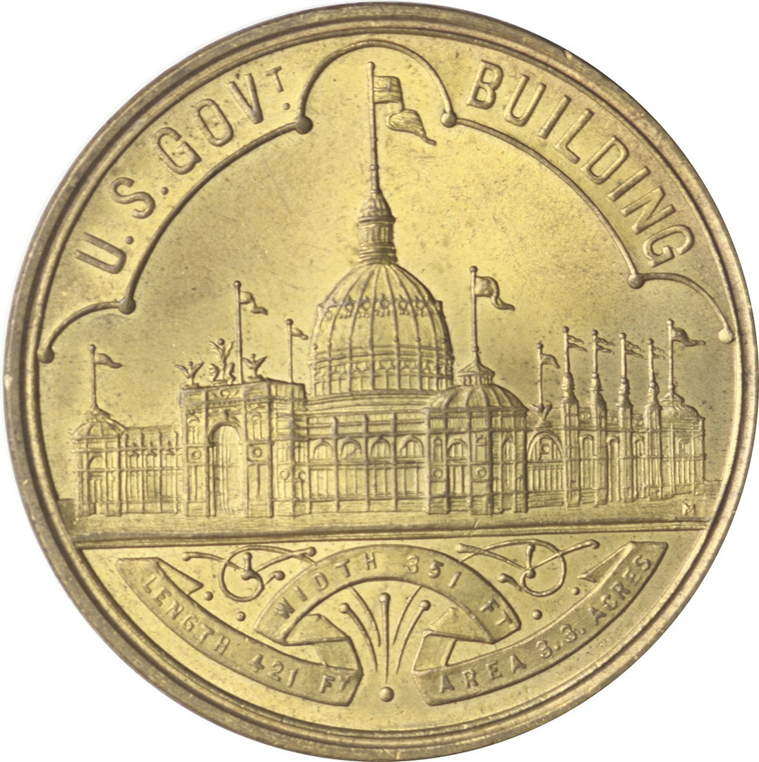 1893 World's Columbian Exposition Type I Large Letters. HK-154. Brass. 24.3 grams. Building. Very Choice Uncirculated.