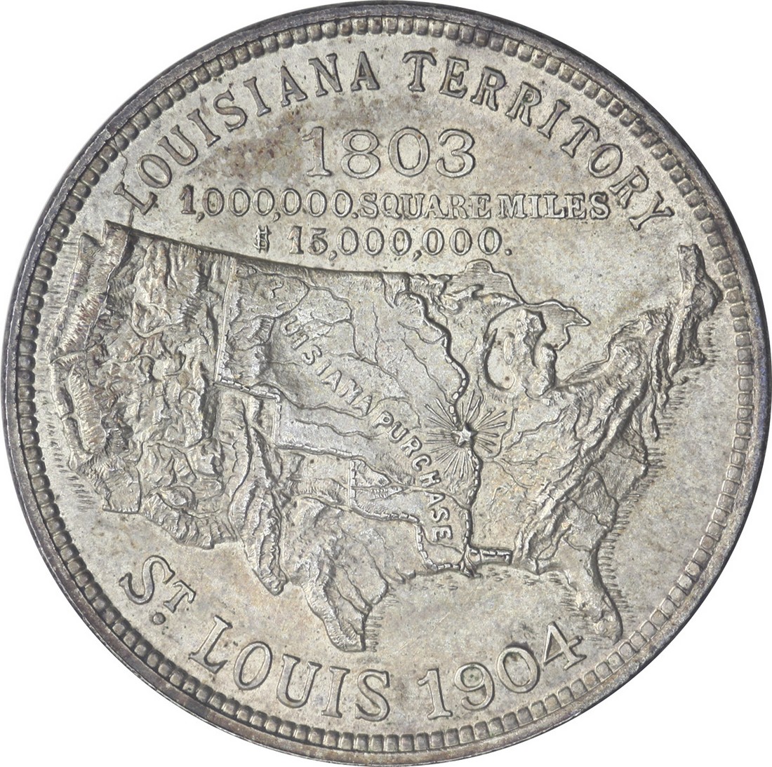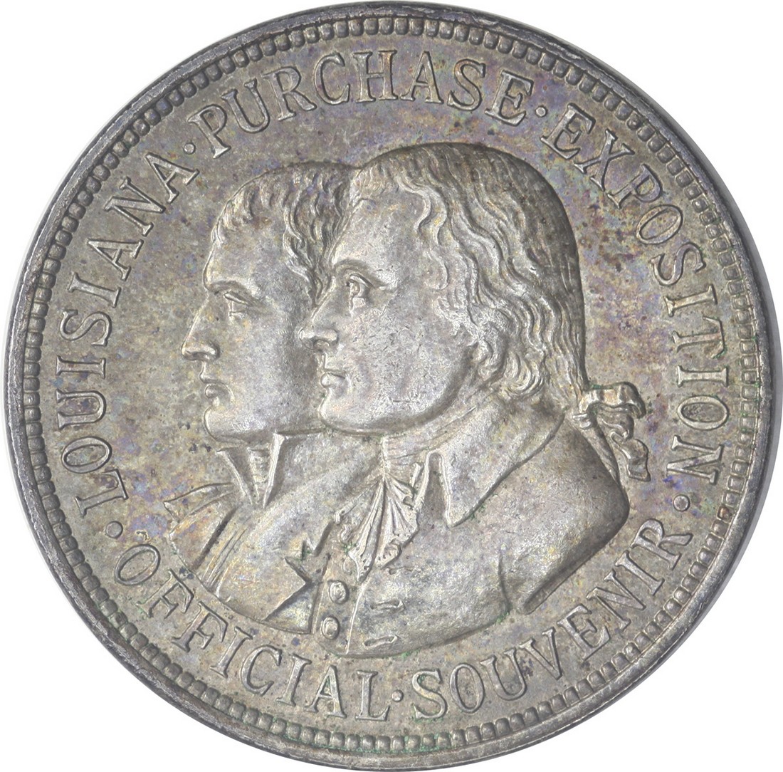 1904 Louisiana Purchase Exposition - St. Louis. HK-299. Silver. 19.1 grams. Napoleon and Jefferson. Map of the U.S. on the reverse. Choice Uncirculated.