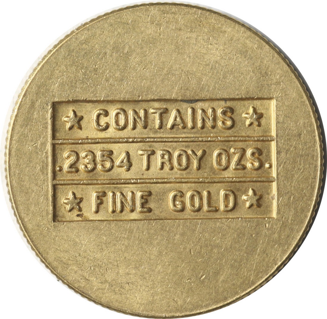 ND (1945-1946) ARAMCO One Sovereign Gold. 0.2354 Troy ozs fine gold content. Eagle surrounded by text which reads "U.S. Mint Philadelphia - USA. The gold content is stated on the reverse. These coins were struck at the Philadelphia Mint a short while after World War II and may have been used to pay the Royal Family for oil rights, or perhaps to pay workers in the oil fields. . Uncirculated.
