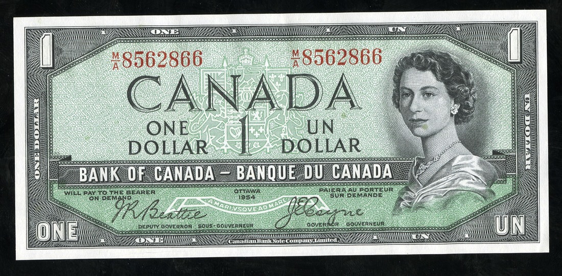 Canada. Bank of Canada. 1 Dollar. 1954. "Devil's Face" Portrait. Ch-BC-29b. Uncirculated.