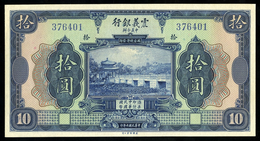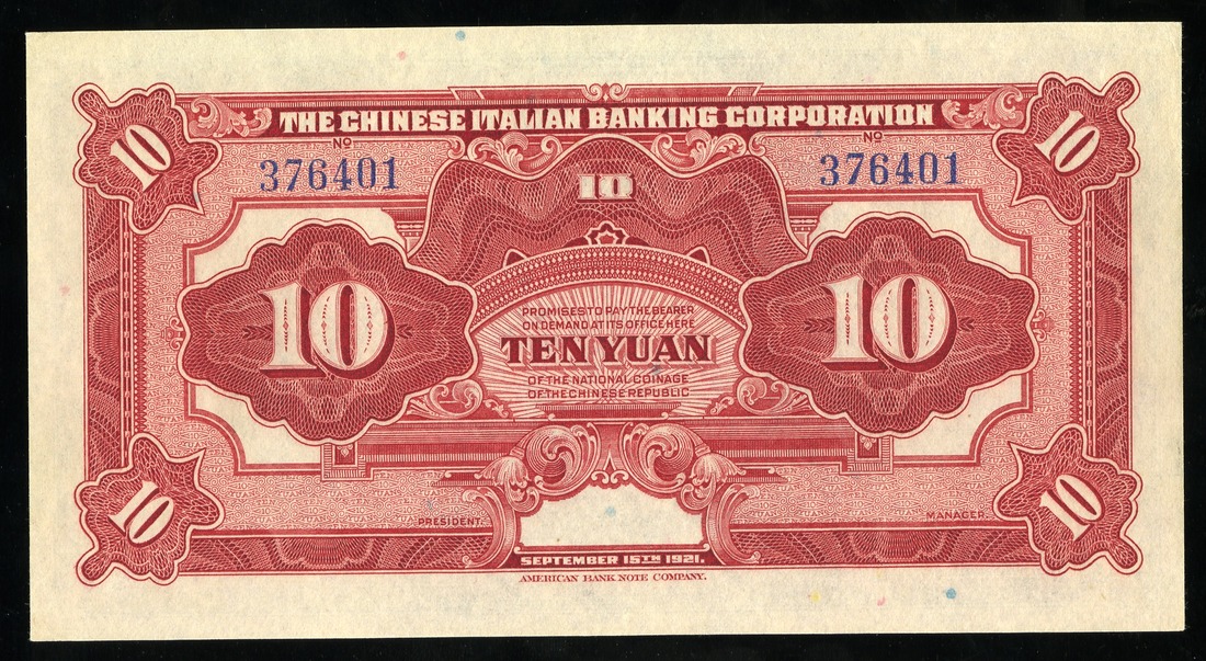 China. Chinese Italian Banking Corporation. 10 Yuan. 1921. P-S255r. Bridge at center. Unsigned. Crisp Uncirculated.