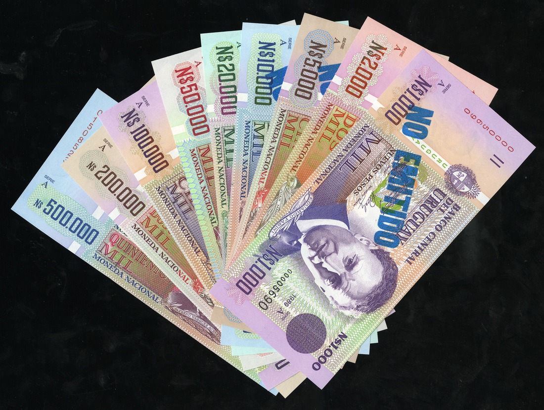 Uruguay. Banco Central. Full Set of the 1989-1992 issue. 1000-500,000 Nuevos Pesos. P-67A-73. Various large portraits on fronts; scenes, allegories and buildings on backs. All Crisp Uncirculated. [9]