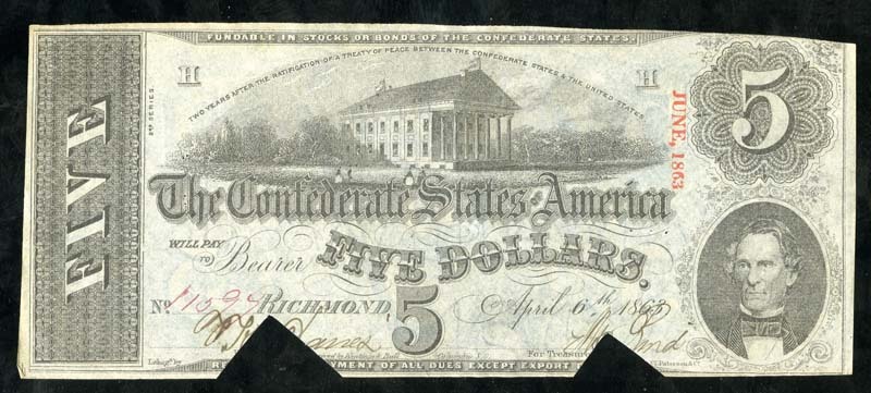 T-60 $5 1863 J. Whatman Watermarked Rarity,