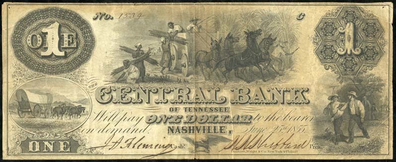 $1, 1855, TN-140-G2, payable at Nashville, slaves load cotton wagon, VF.
