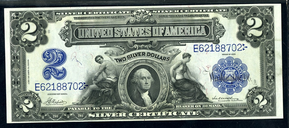 Fr. 253. $2. 1899 Silver Certificate. George Washington. Napier-McClung. No.E62188702. B. From an original bank wrapped pack of twenty-five consecutive notes. PMG About Uncirculated 55 EPQ.