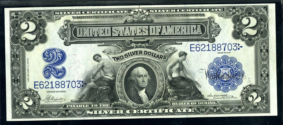 Fr. 253. $2. 1899 Silver Certificate. George Washington. Napier-McClung. No.E62188703. C. From an original bank wrapped pack of twenty-five consecutive notes. PMG Gem Uncirculated 65 EPQ.