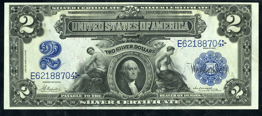 Fr. 253. $2. 1899 Silver Certificate. George Washington. Napier-McClung. No.E62188704. D. From an original bank wrapped pack of twenty-five consecutive notes. PMG Gem Uncirculated 65 EPQ.