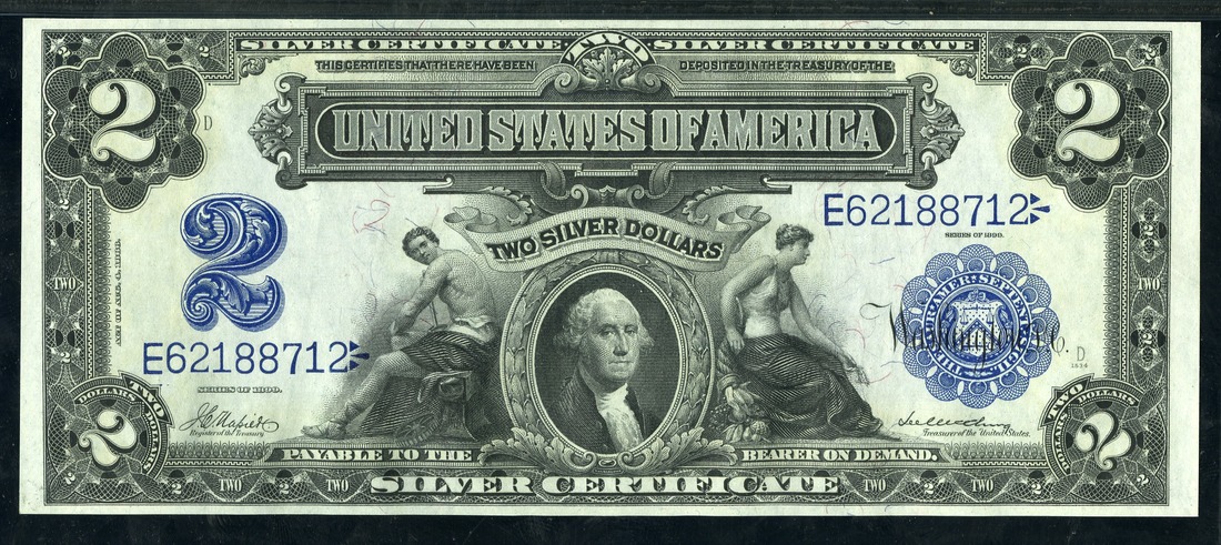 Fr. 253. $2. 1899 Silver Certificate. George Washington. Napier-McClung. No.E62188712. D. From an original bank wrapped pack of twenty-five consecutive notes. PMG Gem Uncirculated 65 EPQ.