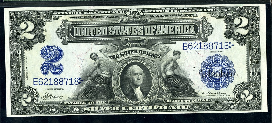 Fr. 253. $2. 1899 Silver Certificate. George Washington. Napier-McClung. No.E62188718. B. From an original bank wrapped pack of twenty-five consecutive notes. PMG Choice Uncirculated 64 EPQ.