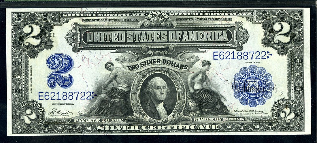 Fr. 253. $2. 1899 Silver Certificate. George Washington. Napier-McClung. No.E62188722. B. From an original bank wrapped pack of twenty-five consecutive notes. PMG Choice Uncirculated 64 EPQ.