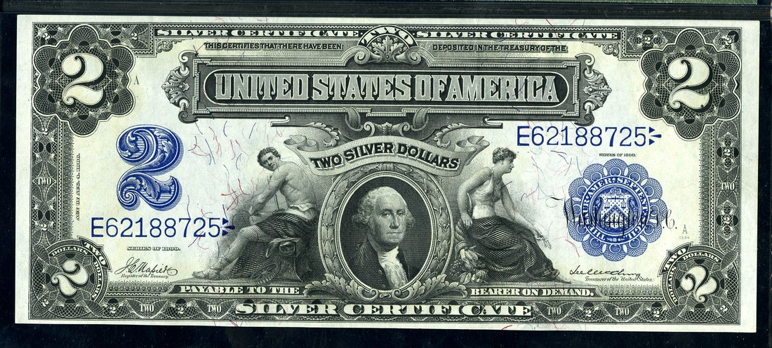 Fr. 253. $2. 1899 Silver Certificate. George Washington. Napier-McClung. No.E62188725. A. From an original bank wrapped pack of twenty-five consecutive notes. PMG Choice About Uncirculated 58 EPQ.