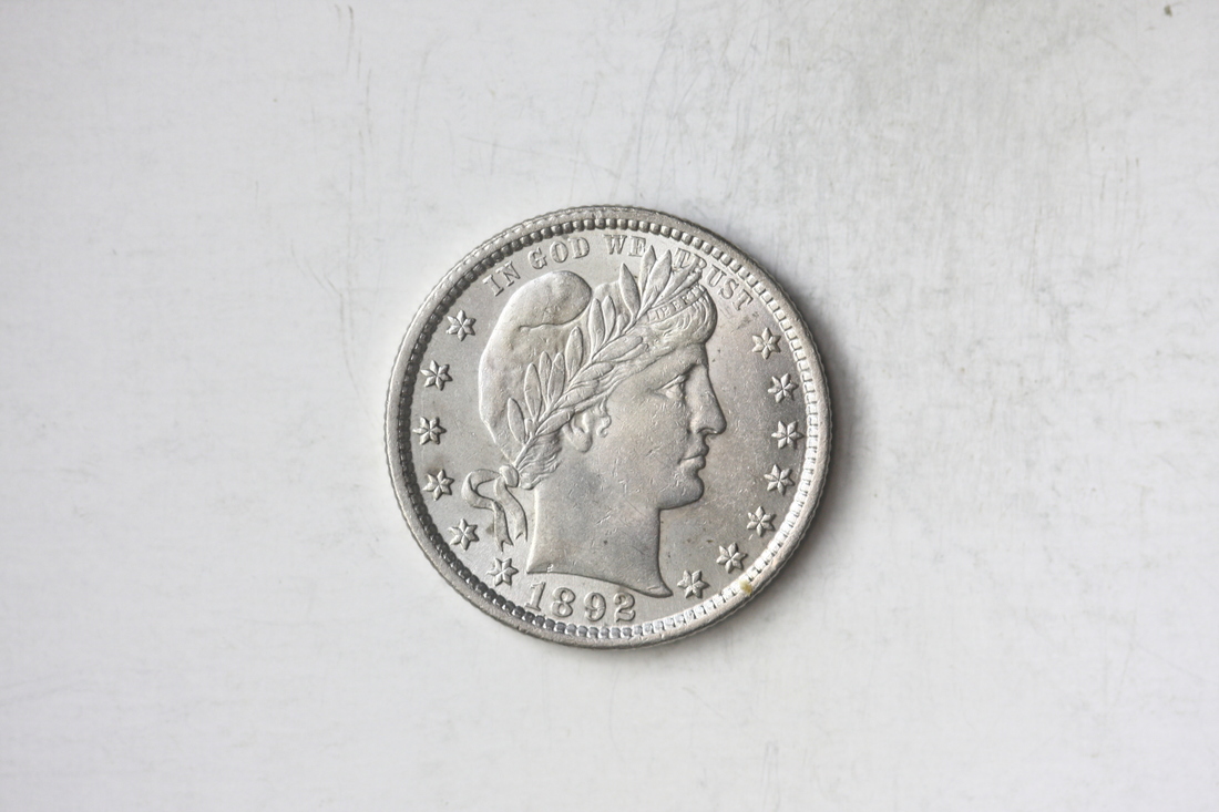 1892. Barber Quarter. Copius mint luster, with only the slightest of friction on the high points. Choice About Uncirculated.