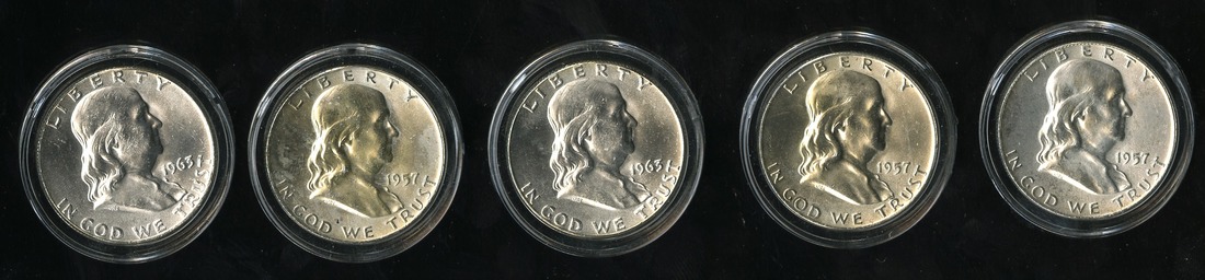 1957 Half Dollars. Brilliant Uncirculated. [5]
