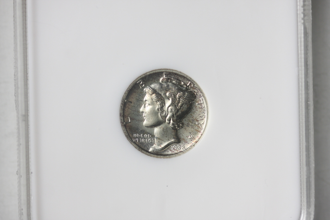 1938 Mercury Dime. NGC PF65. Reflective surfaces under pale nimbus toning.