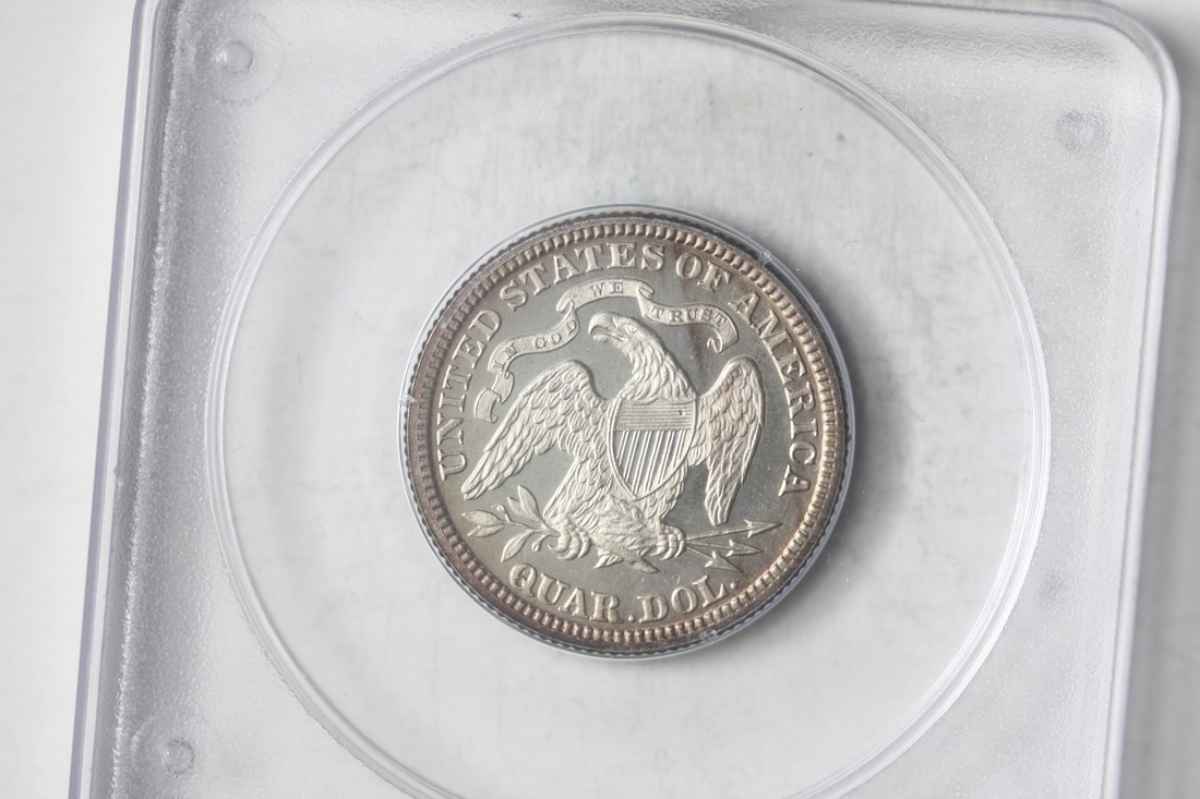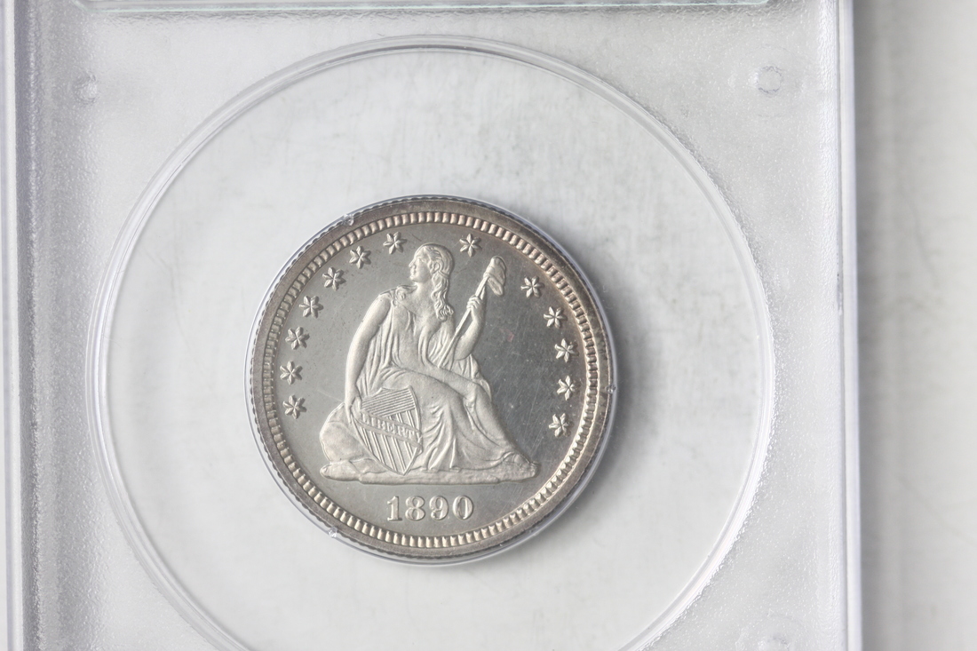 1890 Seated Liberty Quarter. PCGS PF62. Very undergraded by today's standards. There is also a strong chance that this coin would receive a 'cameo' designation in a modern day holder.