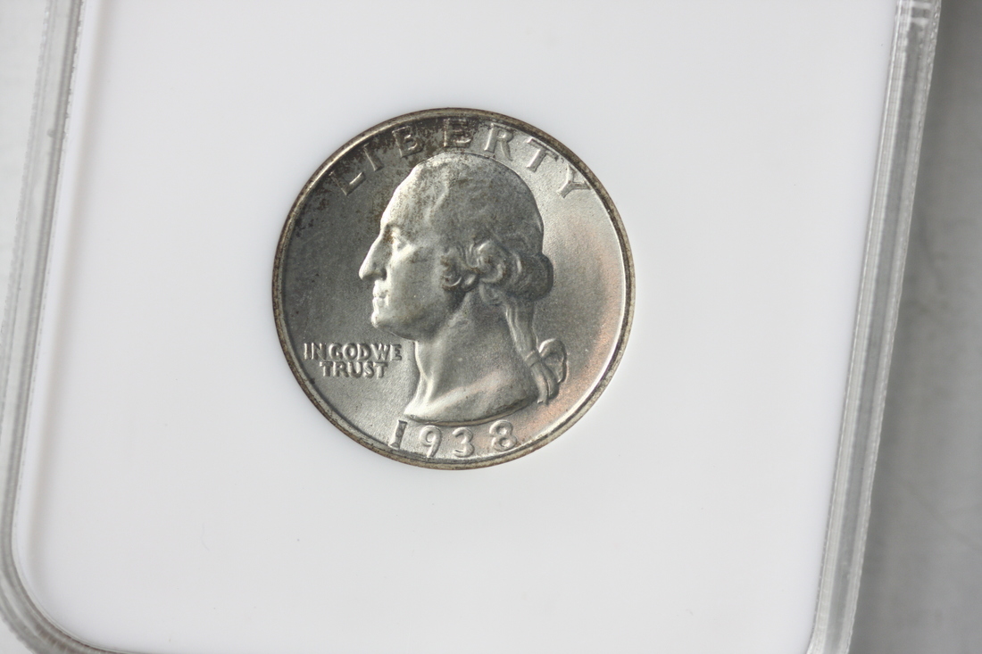 1938 Washington Quarter. NGC MS65. Well-balanced strike with full mint bloom. Like many coins in this collection, this one could also very well crossover into a higher-graded modern holder.