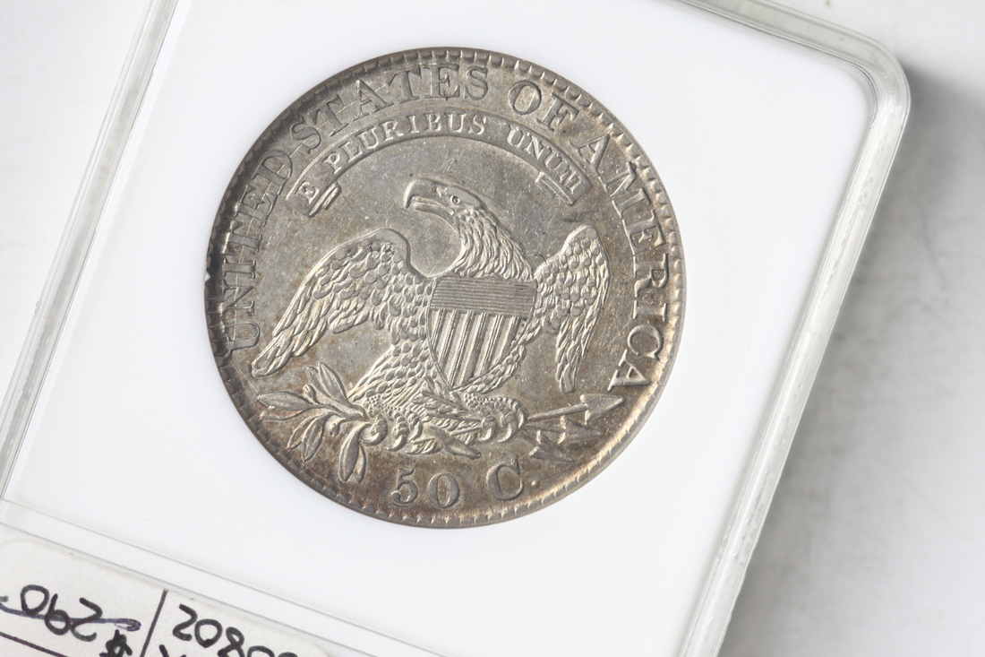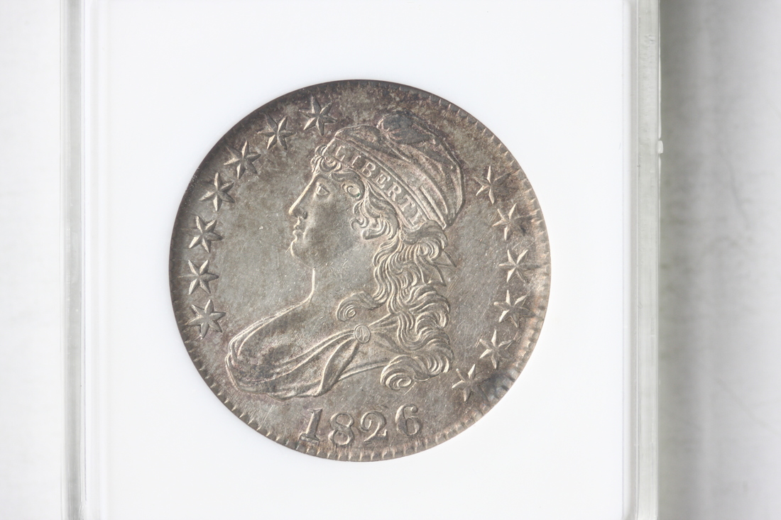 1826 Capped Bust Half Dollar. ANACS AU50. In spite of some hairlines, this coin still has an exquisite presentation and likely is undergraded.
