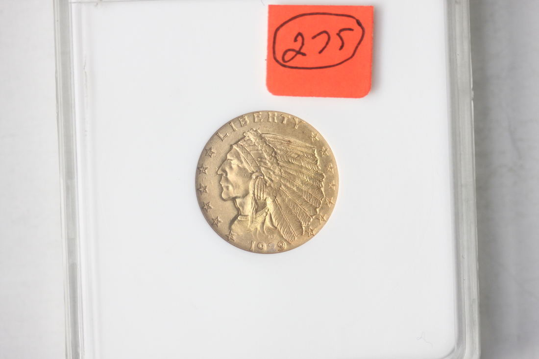 1929 $2.50 Indian. ANACS MS60. Some light, scattered hairlines as well as a faint copper stain in the headdress.
