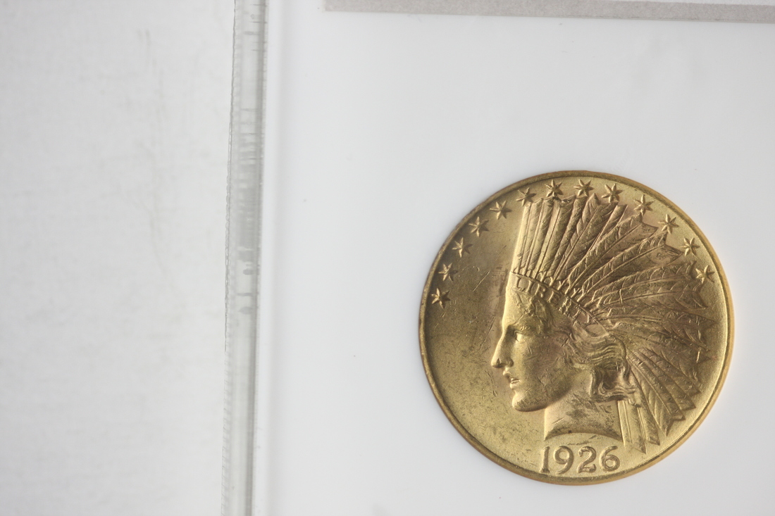 1926 $10 Indian. NGC MS60. A few distracting pin scratches are present in the obverse fields.