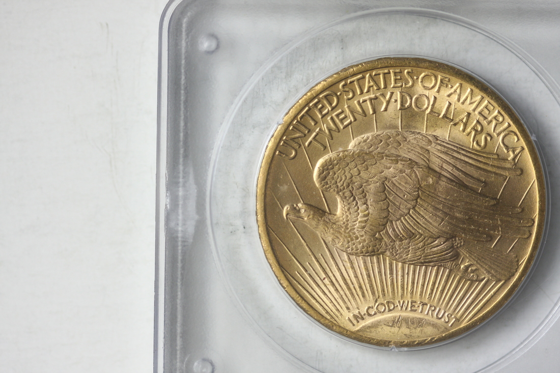 1928 $20 St. Gaudens. PCGS MS64. There is a slight recession on the eagle's left wing, possibly caused by a planchet flaw. Boldly struck otherwise.