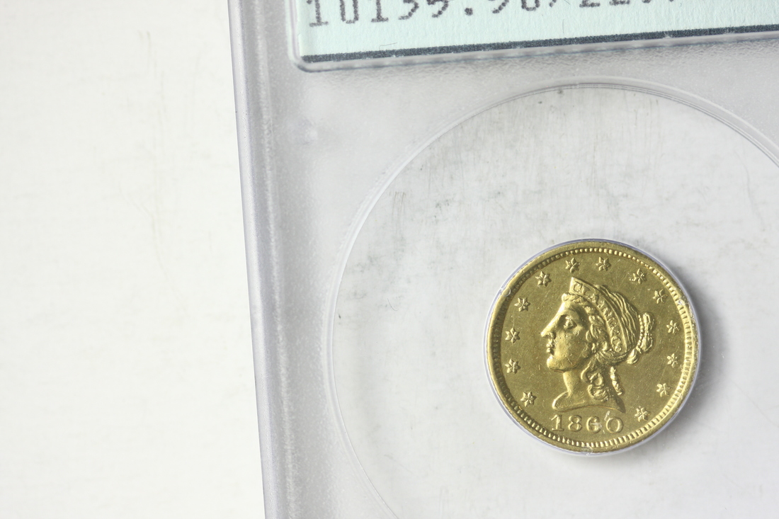 Colorado Gold. 1860 Clark-Gruber $2.50. PCGS AU50. A rather nice $2.50 gold piece from Clark, Gruber, and Co. with pleasant orange toning. The company struck thousands of coins over a successful two year period from 1860-62, after which the owners decided to cash out and sell their business to the US government. The building and much of the equipment that they left behind would eventually be used as an assay office for the federal government from 1863 until 1906 when the entire facility was converted into what we now know as the Denver Mint.