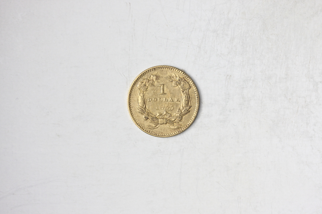 1855 $1 Gold. Type II. EF. The date is indistinct, with a few contact marks.
