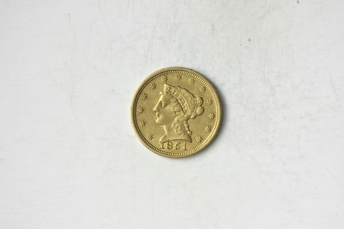 1851 $2.50 Liberty. Very Fine. Nicely preserved, earlier date Liberty Head Quarter Eagle.