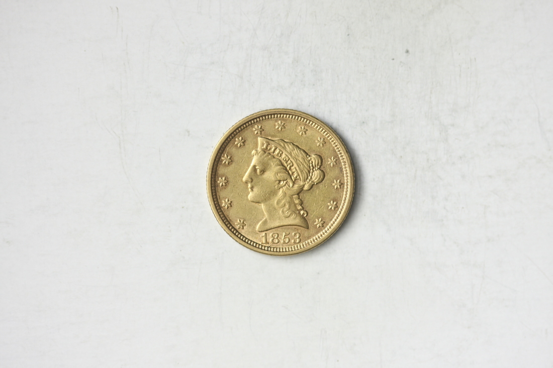 1853 $2.50 Liberty. Extremely Fine. Another earlier date $2.50 Liberty. This one has some rather nice brown-gold peripheral toning.