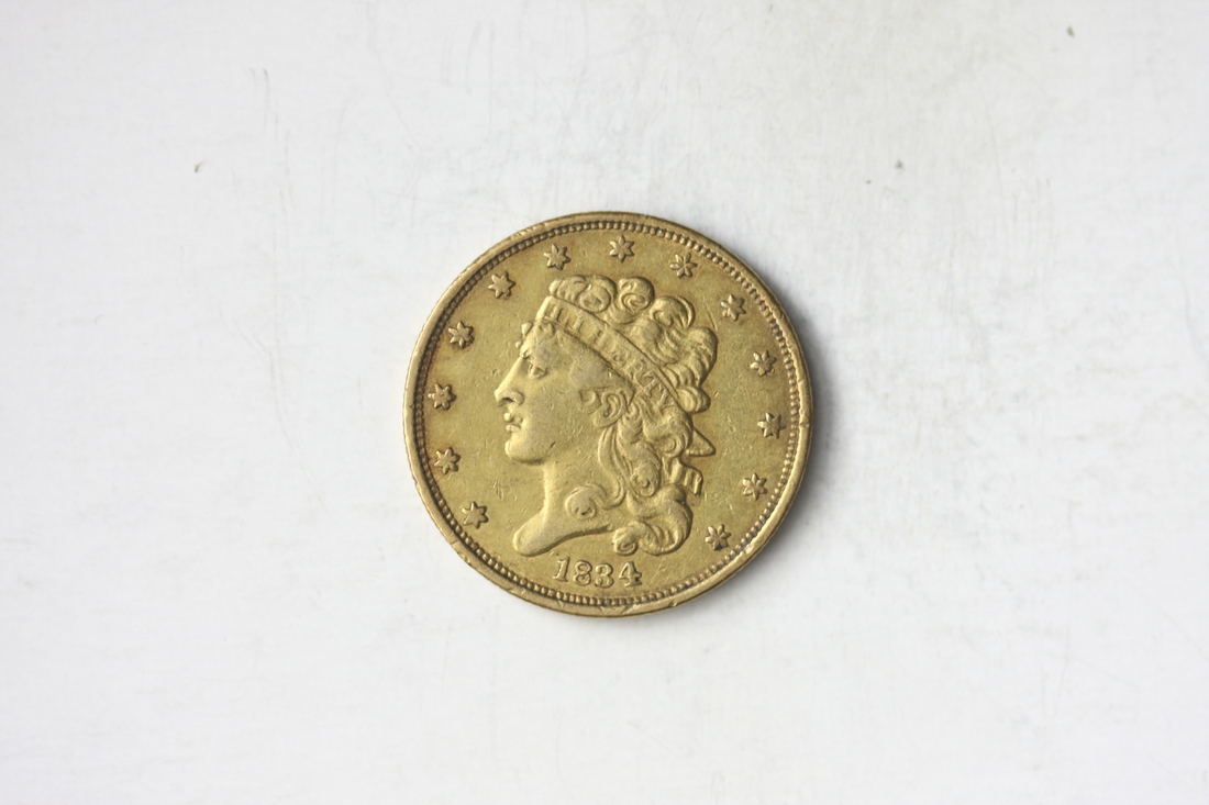 1834 Classic Head $5. Plain 4. Very Fine. Some scattered reverse contact marks pose no real threat to the coin's presentation.