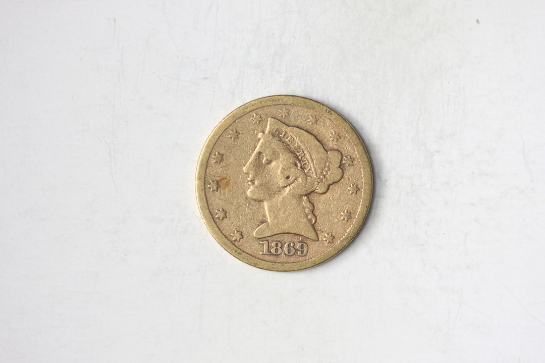 1869-S $5 Liberty. Very Good.