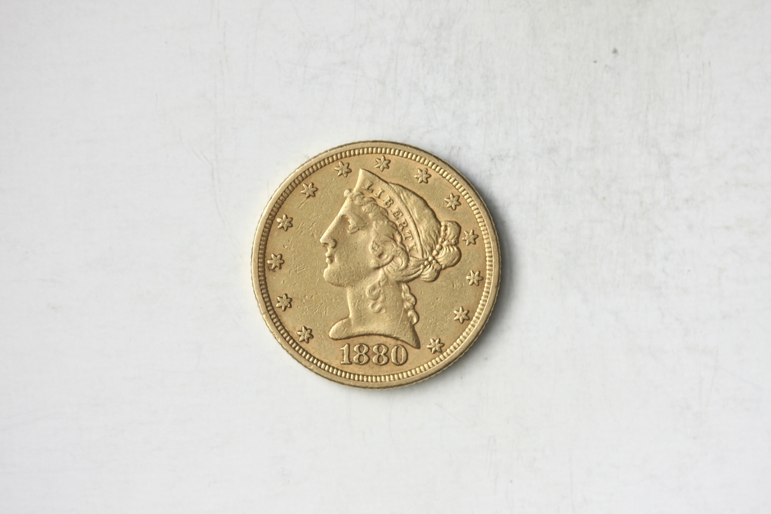 1880 $5 Liberty. Very Fine. Perhaps some faint eveidence of cleaning.