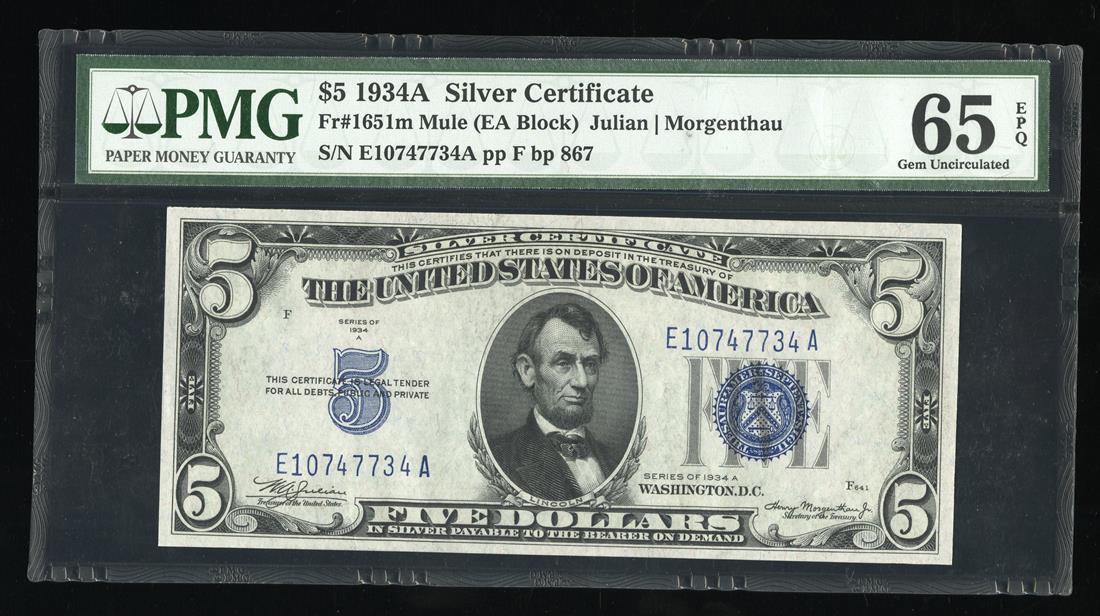Fr.1651m. $5. 1934A Silver Certificate. PMG 65 EPQ.