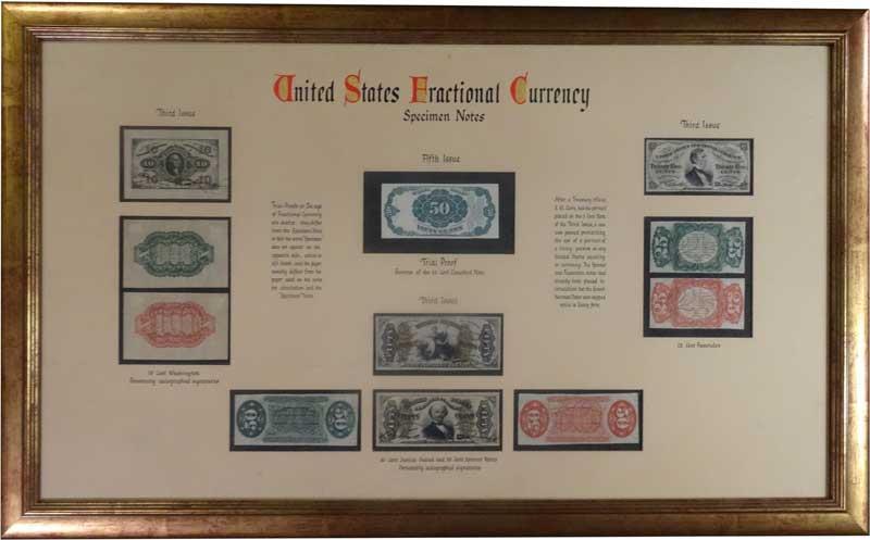 Museum Quality Exhibit of Fractional Currency Specimen, Proof, and Autographed Notes