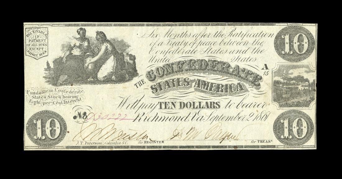 PF-9. Large letter below A. No.130222. A15. Two females, left. The main body of this note is Uncirculated, but the corner tips have faint folds probably as the result of contact with corner mounts. There are three narrow margins, and the other margin is trimmed slightly into the left border. This example has all of the eye appeal of an Uncirculated example. This issue is fairly common in lower grades, but is rarely seen above VF.