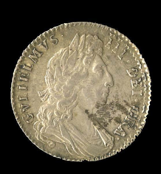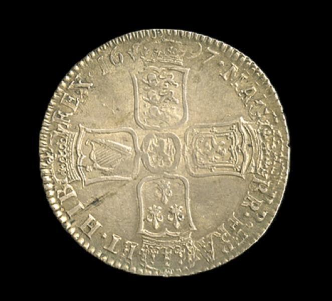 Great Britain. William III (1694-1702). Halfcrown, 1697. Nono. Double struck. Legends only - shifted and doubling. Laureate, draped bust r., rev. Crowned cruciform Arms, lion at center. S.3487, KM 491.7. Dark smudge on lower obverse, some lustre. Nearly Extremely Fine.