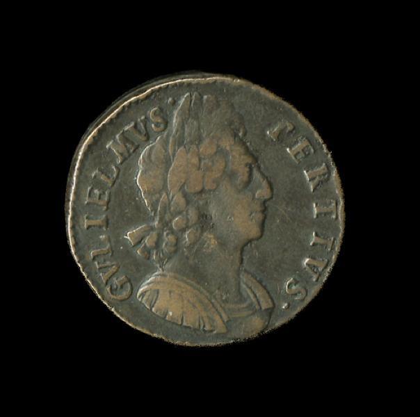 Great Britain. William III (1694-1702). Halfpenny, (1699-1701). Struck with two Obverse Dies. Laureate and cuirassed bust r. Peck 707 (Extremely Rare), S.3556, KM 503. Deep olive-brown. Fine. Unusual and rare.