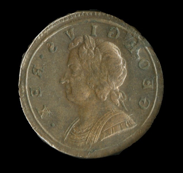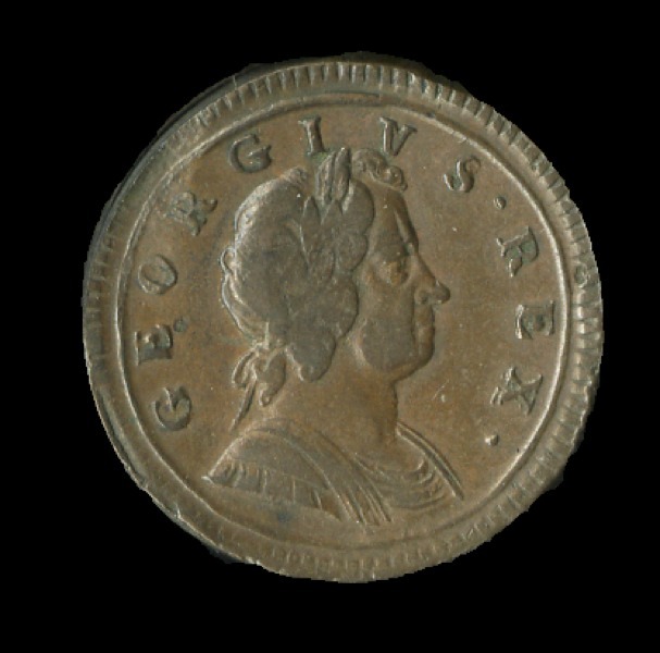 Great Britain. George I (1714-1727). Halfpenny, (1719-1724). Full Obverse Brockage. Laureate, cuirassed bust r. S.3660, KM 557. Small edge flaw from strike. Very Fine.