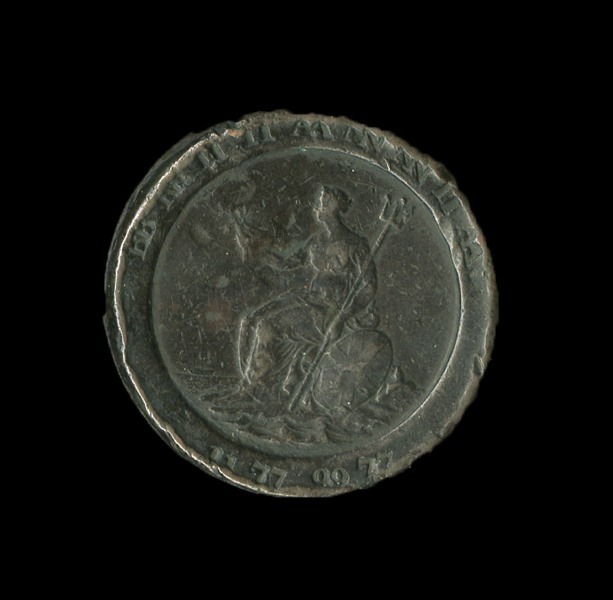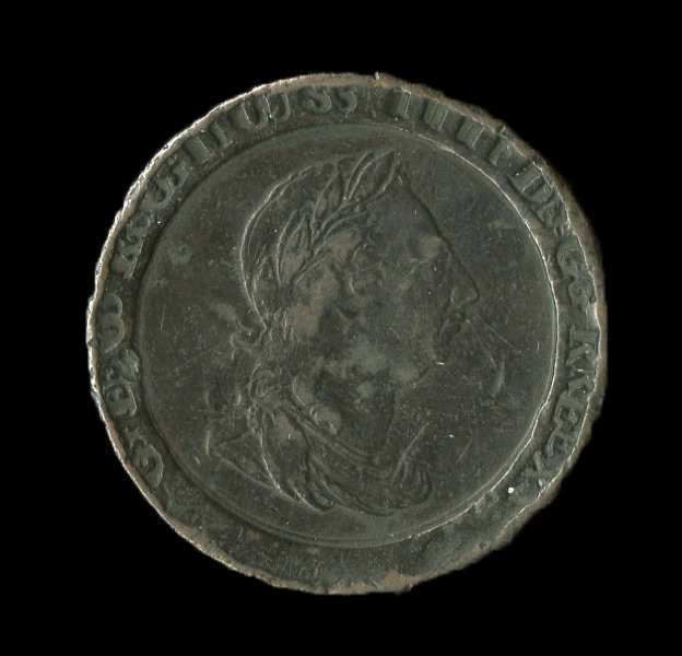 Great Britain. George III (1760-1820). "Cartwheel" 2 Pence, 1797. Soho. Double struck legends. The doubled letters not shadowing but a step over from the first letters, thus the date reads "11779977". Laureate, draped bust r., rev. Britannia seated l.; legends incuse on raised rim. S.3776, KM 619. Contact marks typical of these large, thick pieces, with some obverse scratches and reverse pecks and digs. Fine-About Very Fine. An interesting and quite rare error.