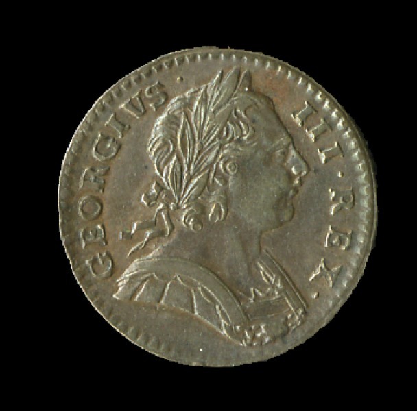 Great Britain. George III (1760-1820). Farthing, (1771-1775). Full Obverse Brockage. Laureate, cuirassed bust r. S.3775, KM 602. Minor obverse hairline. Extremely Fine, a nice example.